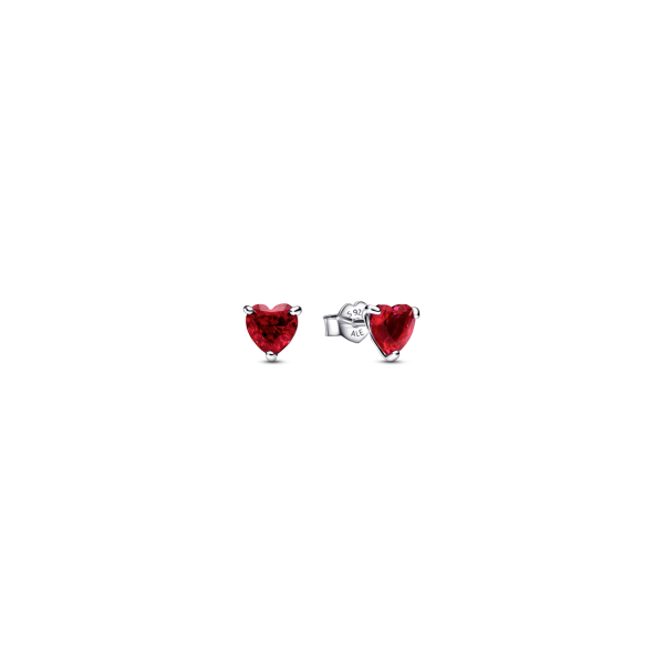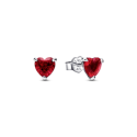 Pendientes Pandora Corazón Rojo para mujer fabricados en plata de primera ley de tipo botón en forma de corazón compuestos por un cristal rojo engastado en 3 garras. Su cierre es de presión.